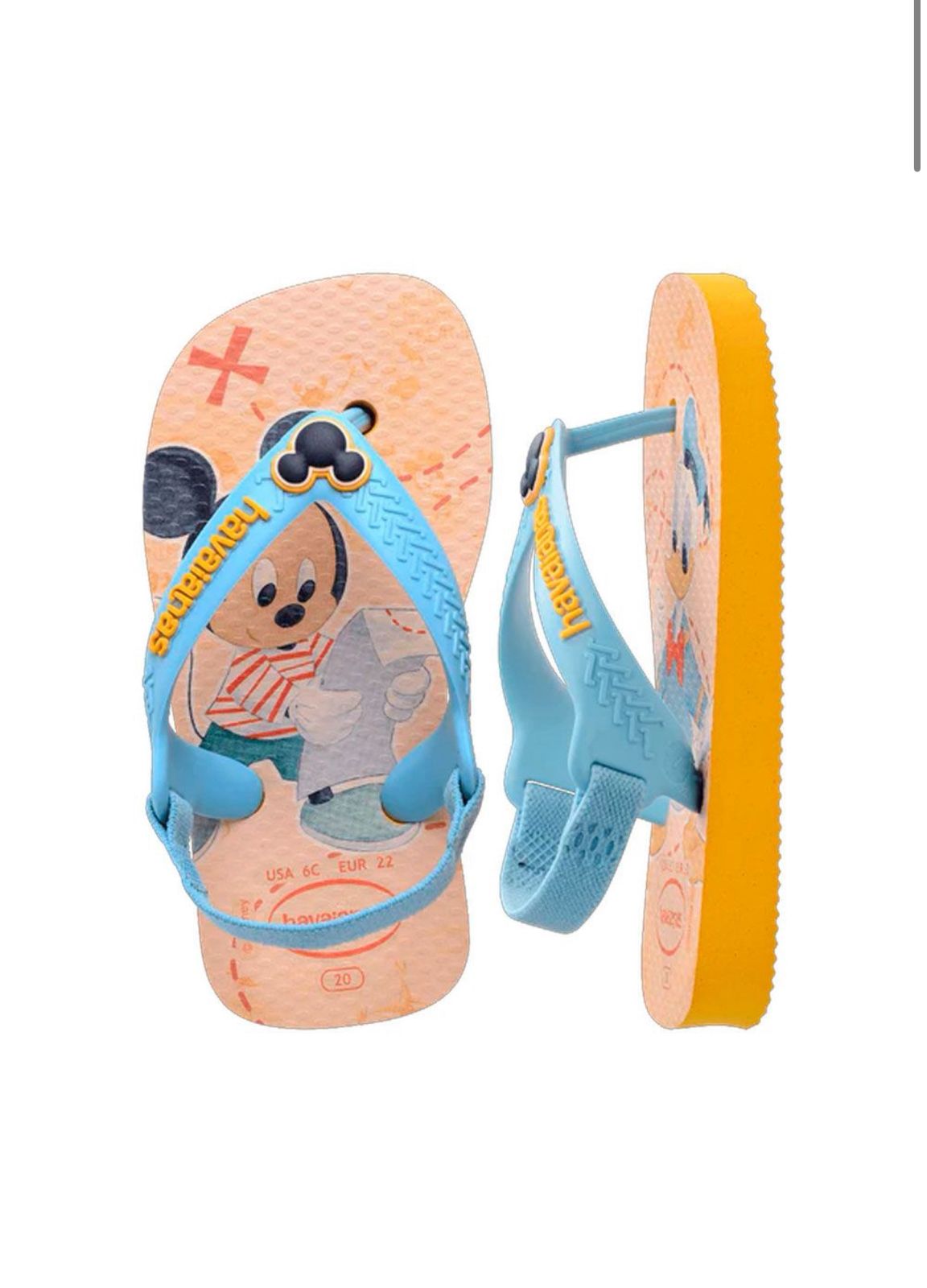 Os chinelos trazem estampas encantadoras com personagens clássicos como Mickey, Minnie e Pato Donald em versões “baby”, transmitindo muita fofura aos pezinhos dos pequenos.