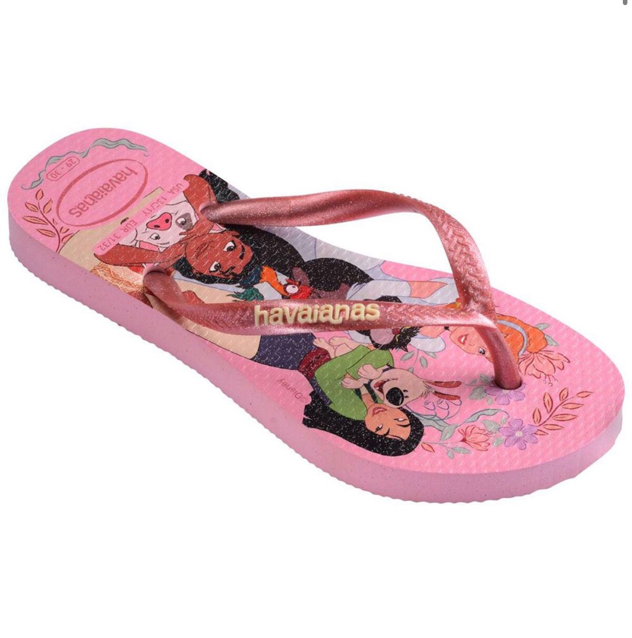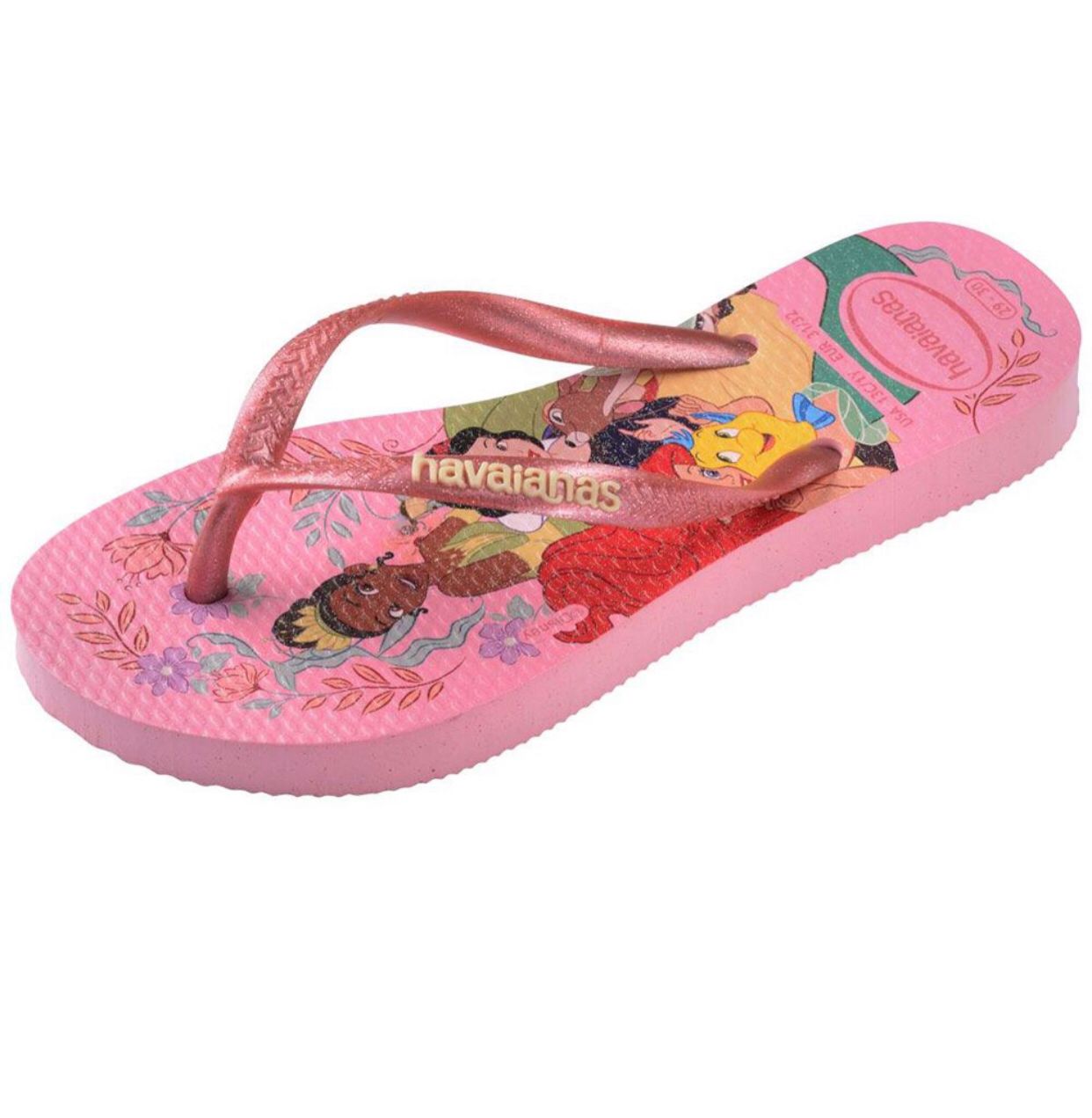 A Havaianas Kids Slim Princess Rosa é perfeita para as pequenas que amam o mundo mágico das princesas Disney. Com tiras finas e delicadas, traz um tom suave de rosa e estampa encantadora das princesas, cheia de cores e detalhes que despertam a imaginação. Produzida em borracha macia e resistente, garante conforto, leveza e solado antiderrapante para acompanhar todas as brincadeiras com segurança e estilo.