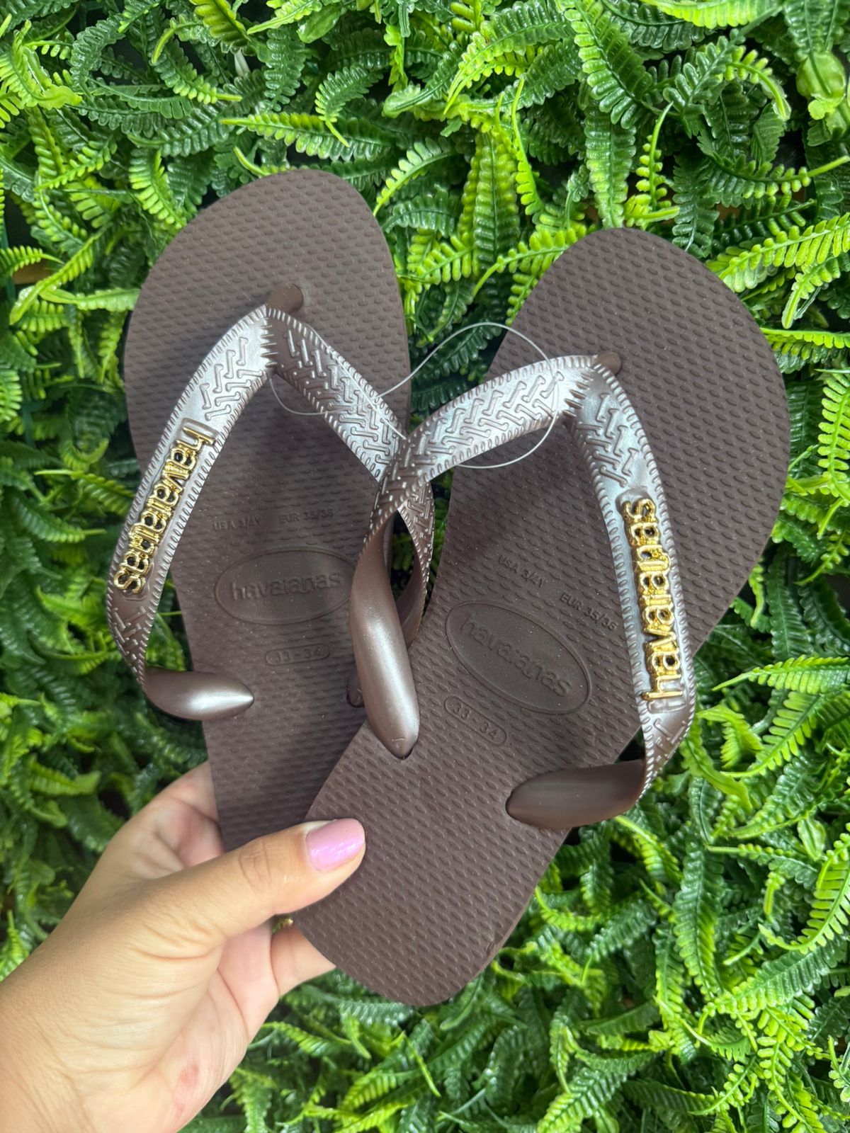 A clássica que você ama, agora com um toque de brilho! A Havaianas Top Logometallic traz a tradicional sola macia e confortável das Havaianas, com um detalhe metálico na logo que dá um charme moderno e sofisticado ao chinelo. Perfeita para quem gosta de um visual básico com um toque fashion, ideal para usar no dia a dia ou dar aquele up no look de verão.
