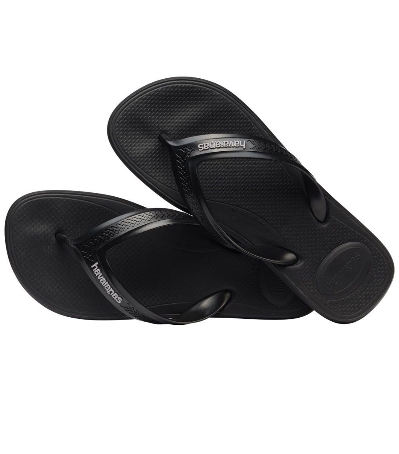 Esse modelo é uma versão mais robusta e sóbria das Havaianas clássicas, com tiras largas e um solado anatômico com relevo no calcanhar, oferecendo um conforto extra para uso diário.